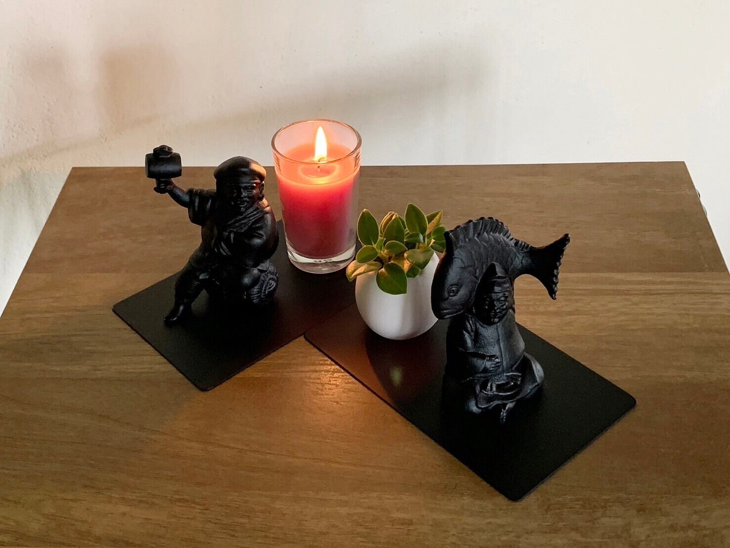 五穀豊穣と立身出世をもたらす福の神「恵比寿と大黒」が本を支えることで、